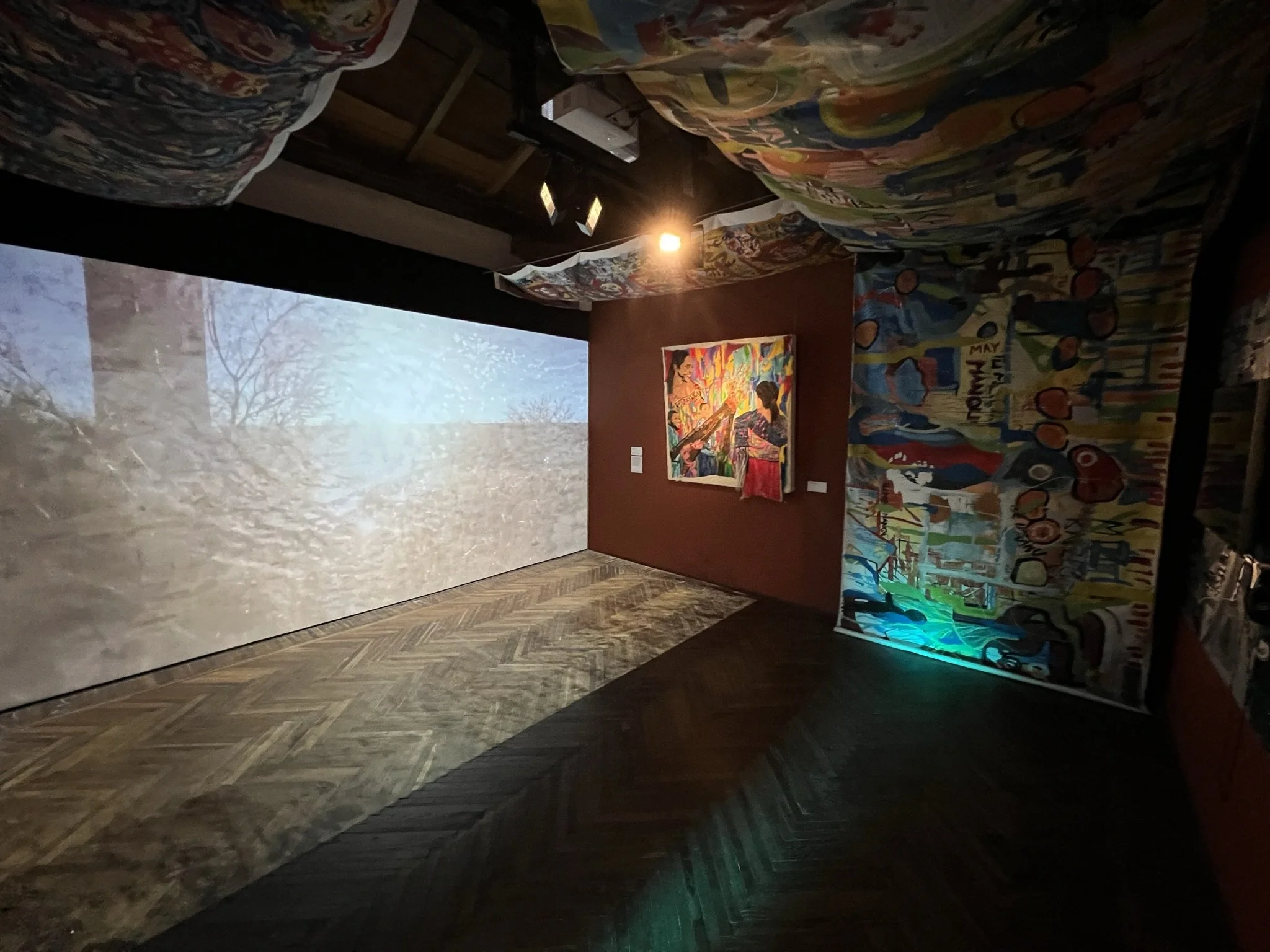 The project was accepted into the 2023 Time Space Existence biennial in Venice, Italy in the fall of 2022. Our space was small, and we wanted to create an immersive feel with some elements of theatre, integrating the following: